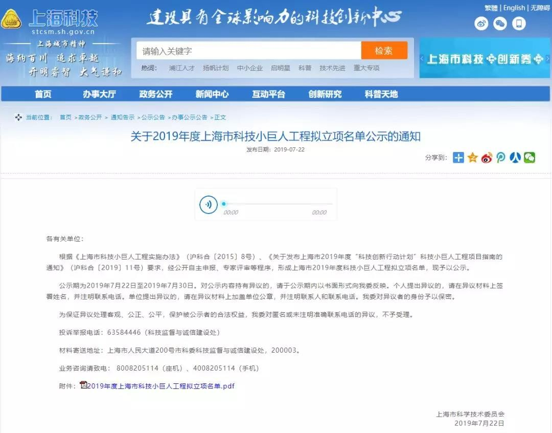 2019年7月22日,广州市科学技术委员会公示了2019年度广州市科技小巨人工程拟立项名单,目前公示期已结束,昇昊软件和全资子公司影卓双双入选为“2019年度广州市科技小巨人培育企业”。